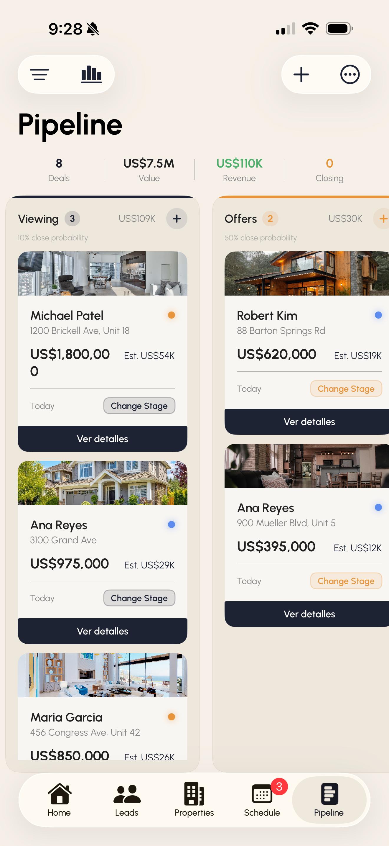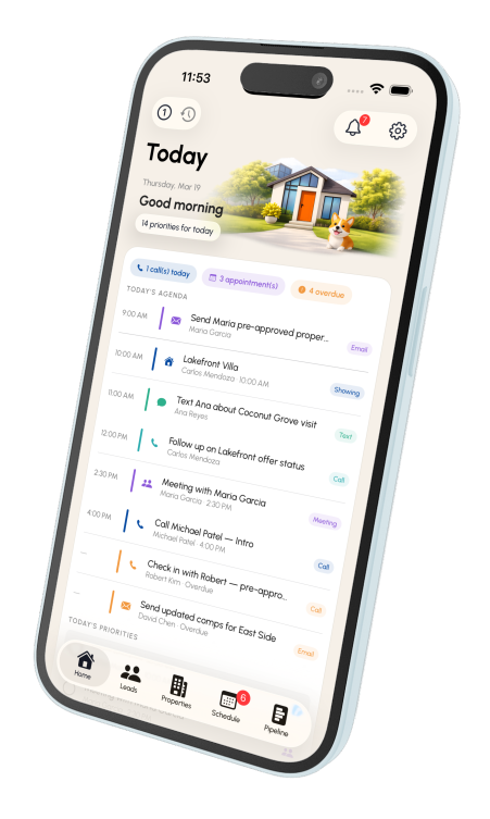 Gestiona citas, configura recordatorios de seguimiento y controla tu calendario de open house para no perderte ni una visita.